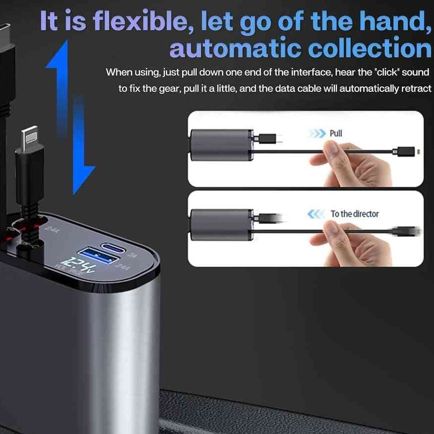 120W 4-in-1 Retractable Car Charger Socket Built-in Retractable Charging Cable User Guide